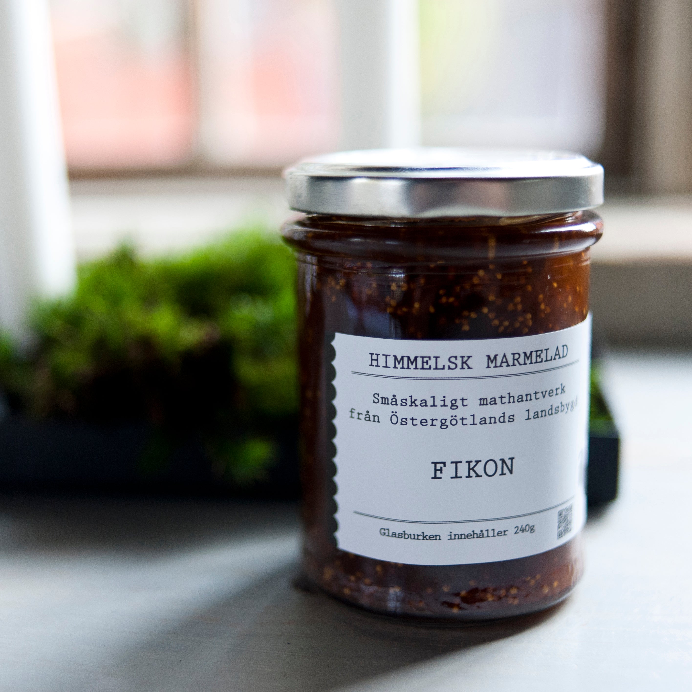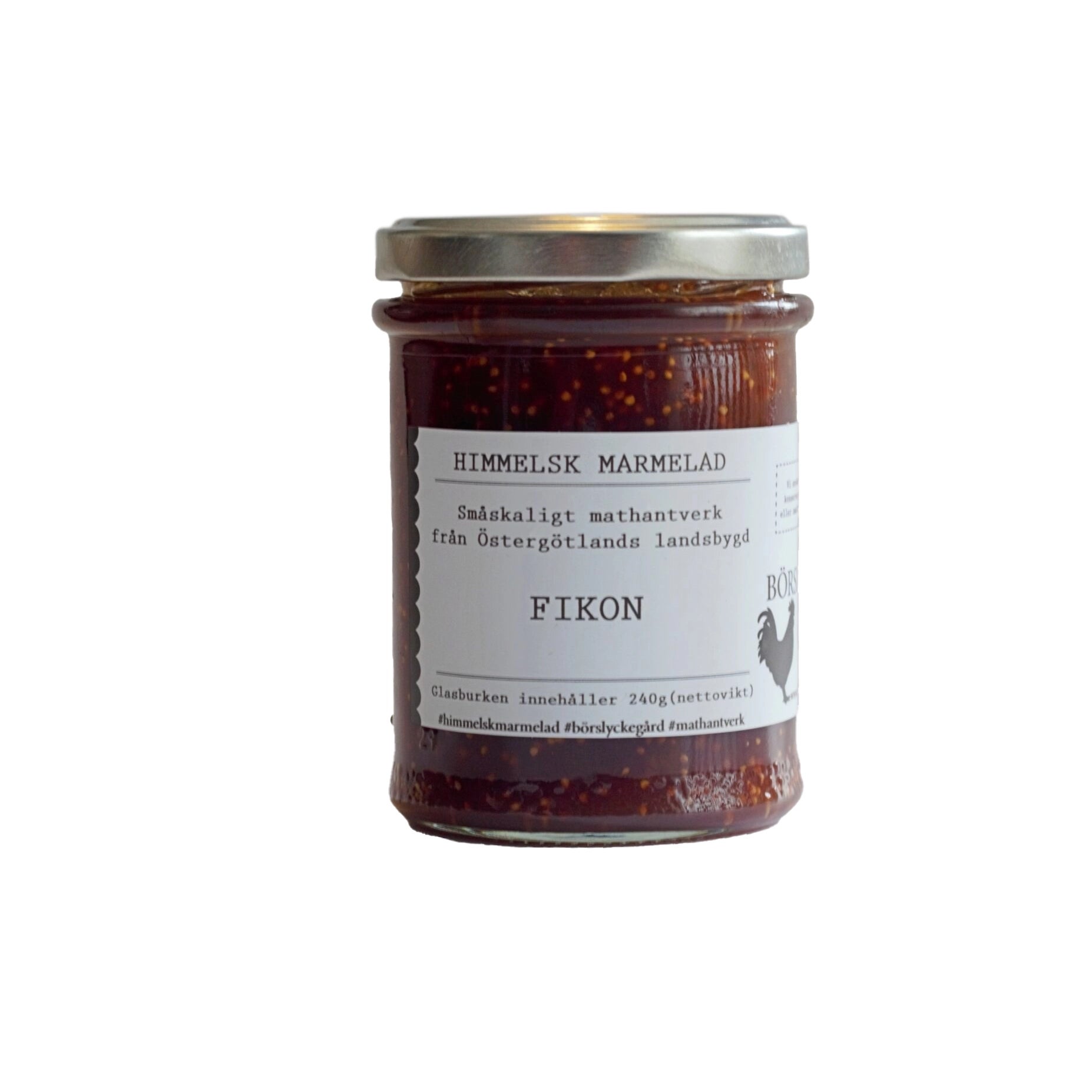 En underbart god fikonmarmelad med högt fruktinnehåll. Ett utmärkt tillbehör till ostbrickan! Småskaligt mathantverk från Östergötlands landsbygd, tillverkat på Börslycke Gård med naturliga råvaror och utan tillsatser.