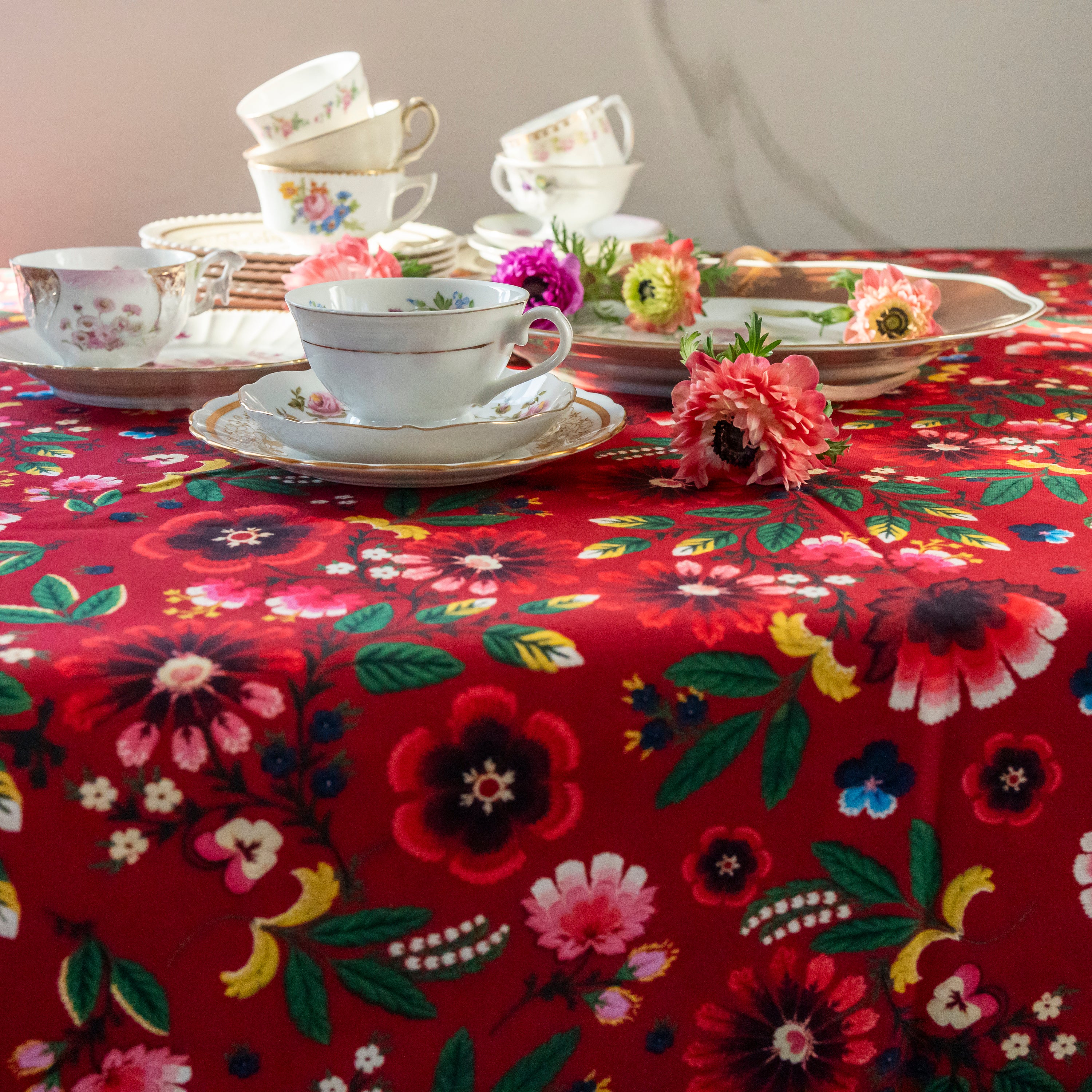 Vacker bordsduk från vår egen kollektion med blommönster hämtat från Dalafloda folkdräktens jacka. Denna duk kommer definitivt att bli en blickfångare som passar lika bra till vardags som till fest!