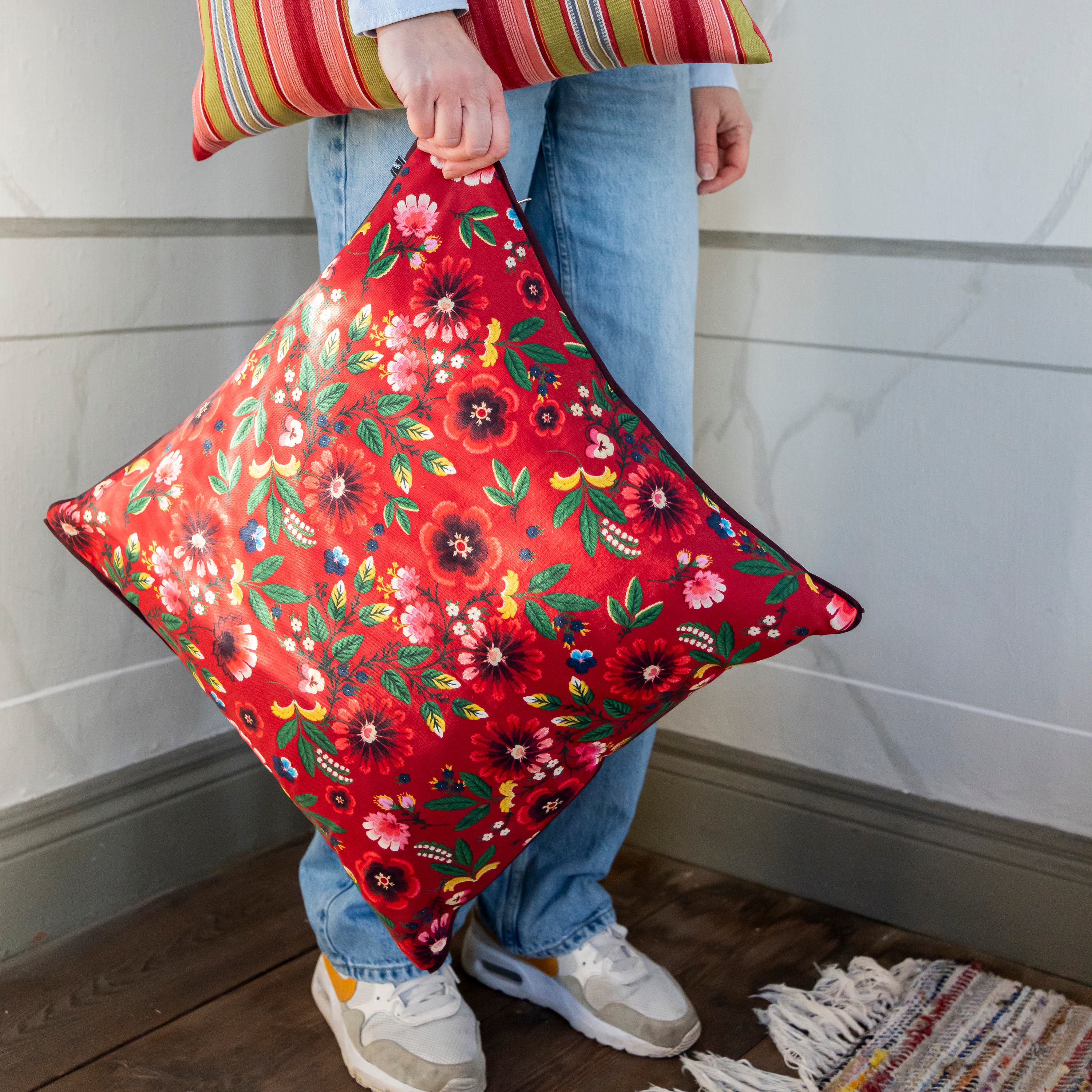 Vackert kuddfodral med blommönster hämtat från Dalafloda folkdräktens jacka. Tryckt mönster på 100% ekologisk GOTS-certifierad bomull. Kuddfodralet blir en fin inredningsdetalj som passar lika bra i soffan, sängen som i utemöblerna. Innerkudde ingår ej.