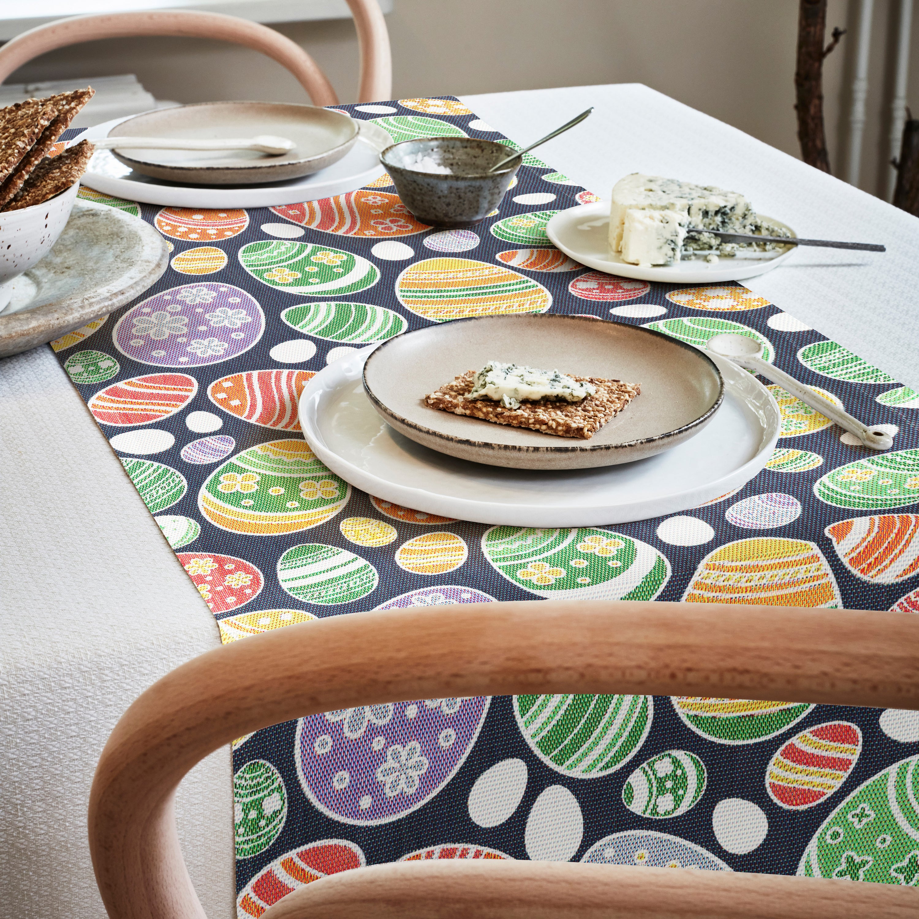 Härlig bordslöpare från Ekelunds. Tillverkad i Sverige av 100% ekologisk GOTS-certifierad bomull av högsta kvalitet. Den vackra vävningen med mönster av påskägg i fina färger kommer att ge påskdukningen ett extra lyft.