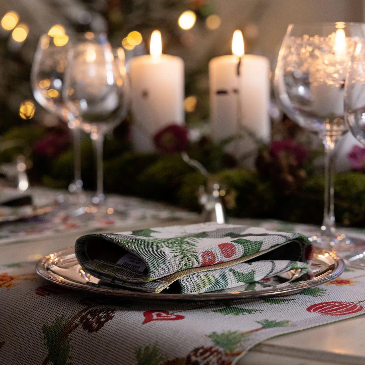 En handduk vävd i 100 % ekologisk GOTS-certifierad bomull, tillverkad i Horred i Sverige. Med sitt juliga mönster blir den ett fint inslag oavsett om den används i köket, i badrummet eller som en dekorativ detalj på bordet.