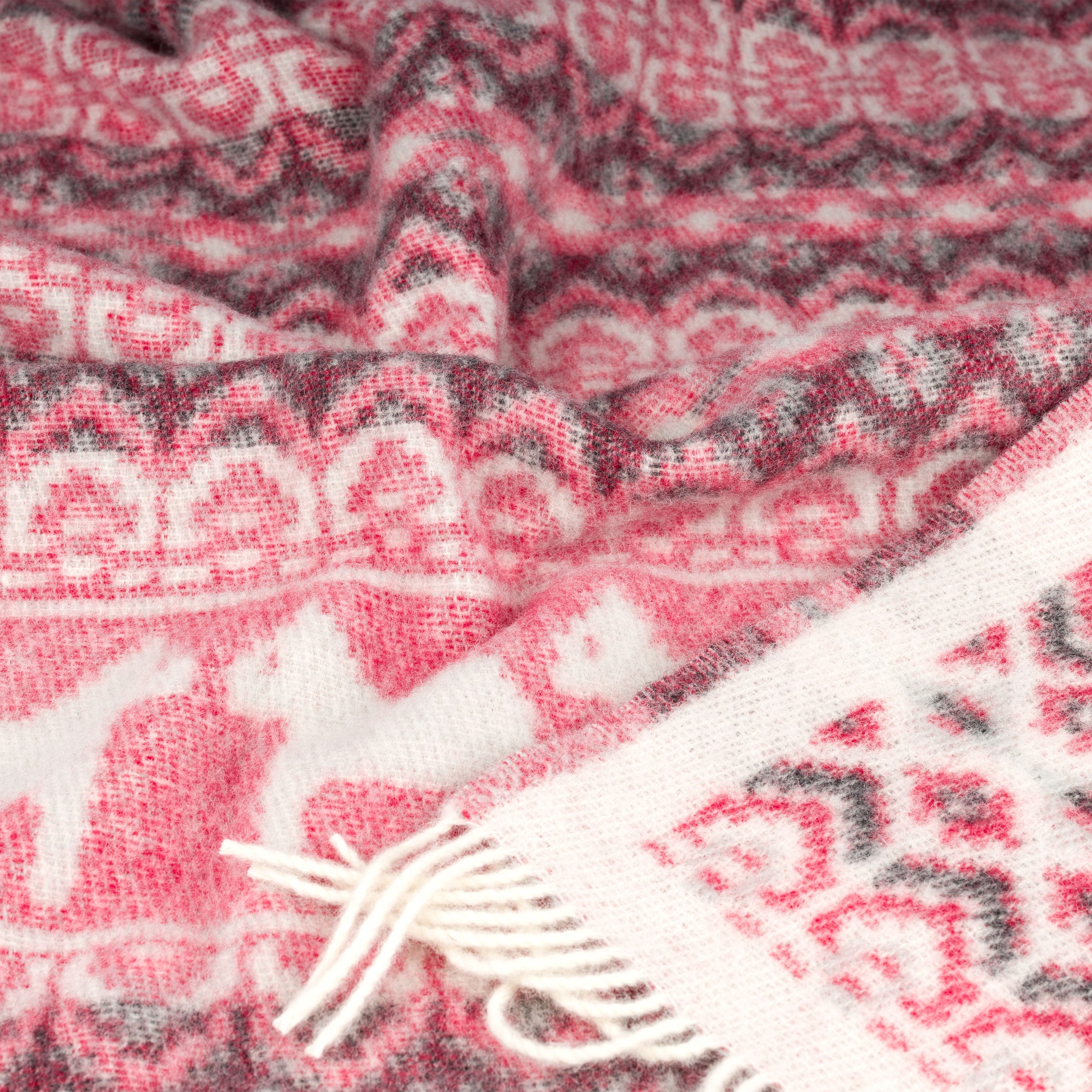 Mjuk och varm pläd av 100% ull från Öjbro med mönster inspirerat av Dalarna. Mysig att svepa in sig i under sena sommarkvällar och kyliga vinterdagar, men blir även en fin dekorationsdetalj till hemmet när den inte används.
