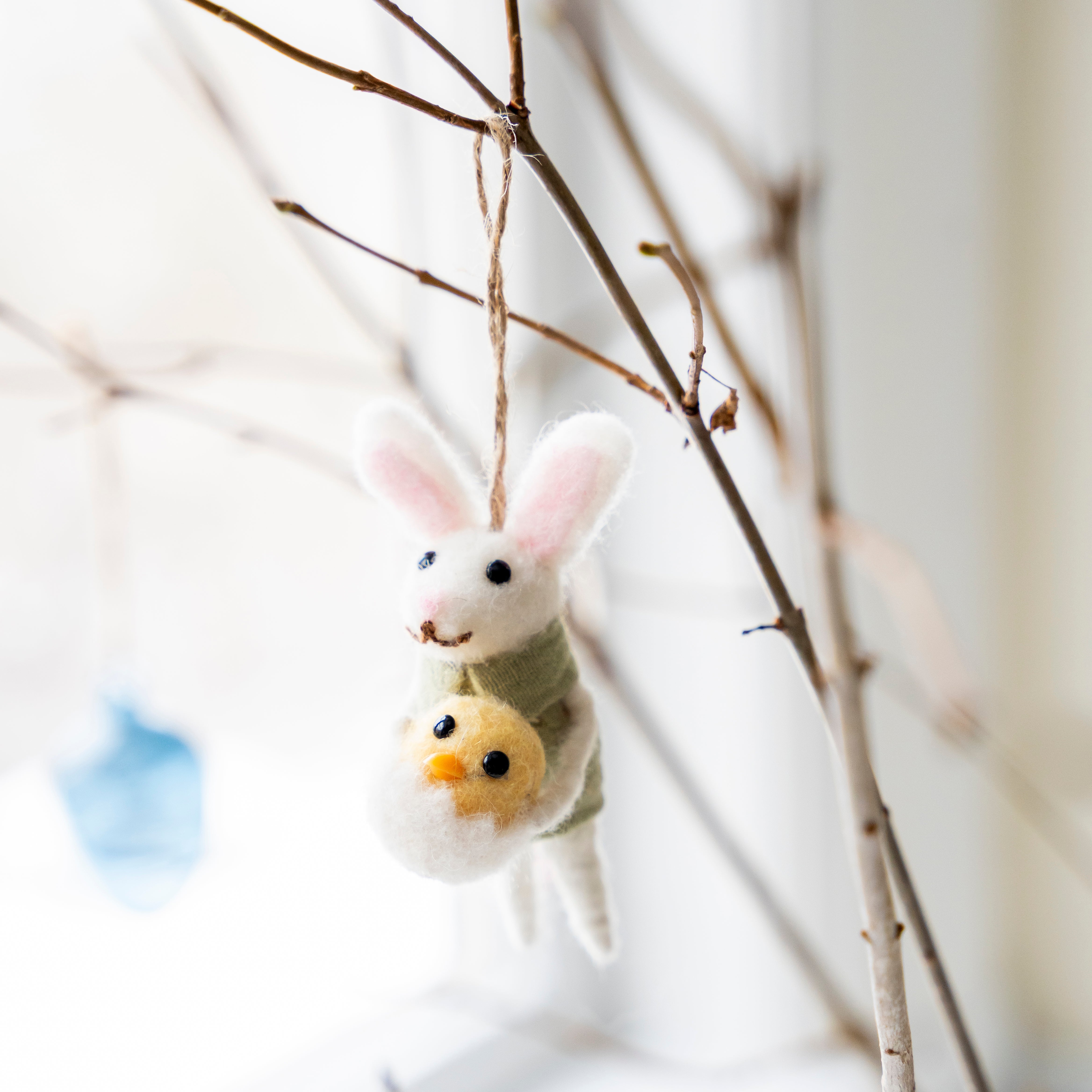 NyhetMiljögårdenPåskhänge i ull, hare med kyckling